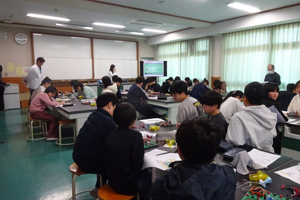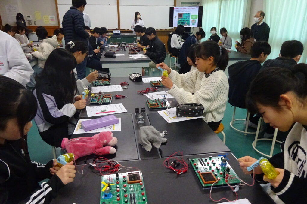 【1月23日】村田製作所の方にお越しいただき、電気の働きや地球温暖化について学習しました。一人ずつ教材も用意していただき、実際に自分で電気を起こしたり、光の明るさを比べたりしました。電気の使い方についても考える機会になりました。丁寧にお話していただきありがとうございました。