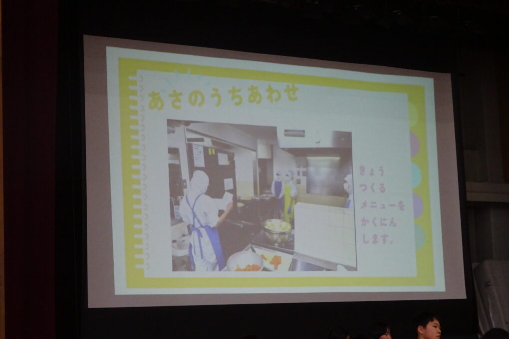 R7 長七小トピックス【1月26日】全校児童が体育館に集まりました。今日は給食委員会が、今日から始まる給食週間や給食ができるまでのことを発表しました。また、6年生が家庭科で学習したことをもとに考えた給食の献立について発表しました。6年生の中で選ばれた各クラス1グループが発表したのですが、実際に2月の給食に登場します。楽しみです。