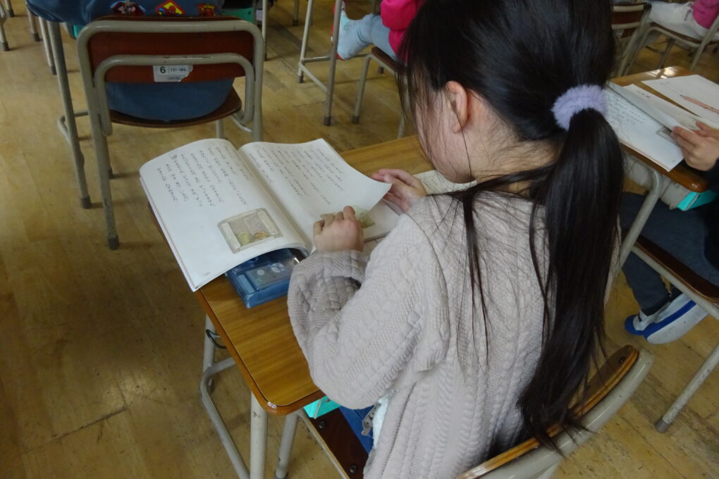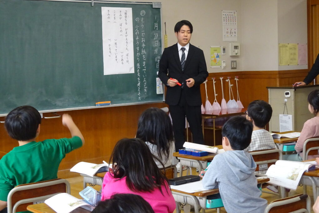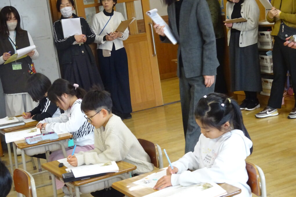 【1月】今日は、2年生の国語「お手紙」の授業を全教員が参観しました。文章の中で登場人物の気持ちがわかる文はここだと思うところを見つけ、黒板の模造紙の文にシールを貼りに行きました。なぜそこだと思ったのか、それぞれしっかりと考えて発表していました。