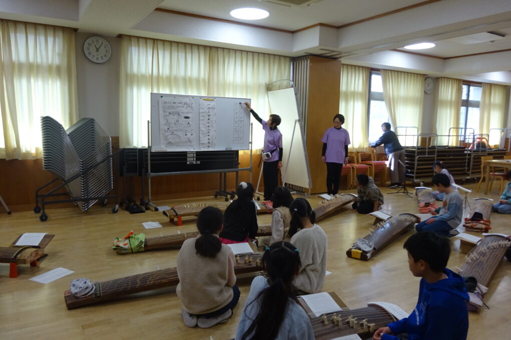 【2月16日】今年度もお箏伝承の会の皆さんにお越しいただき、4年生がお箏の演奏を体験しました。演奏するのはもちろん、見たことも聞いたこともない児童がほとんどですが、丁寧に教えていただき、最後にはみんなで「さくら」を演奏することができました。伝統文化に触れる大変貴重な経験となりました。ありがとうございました。