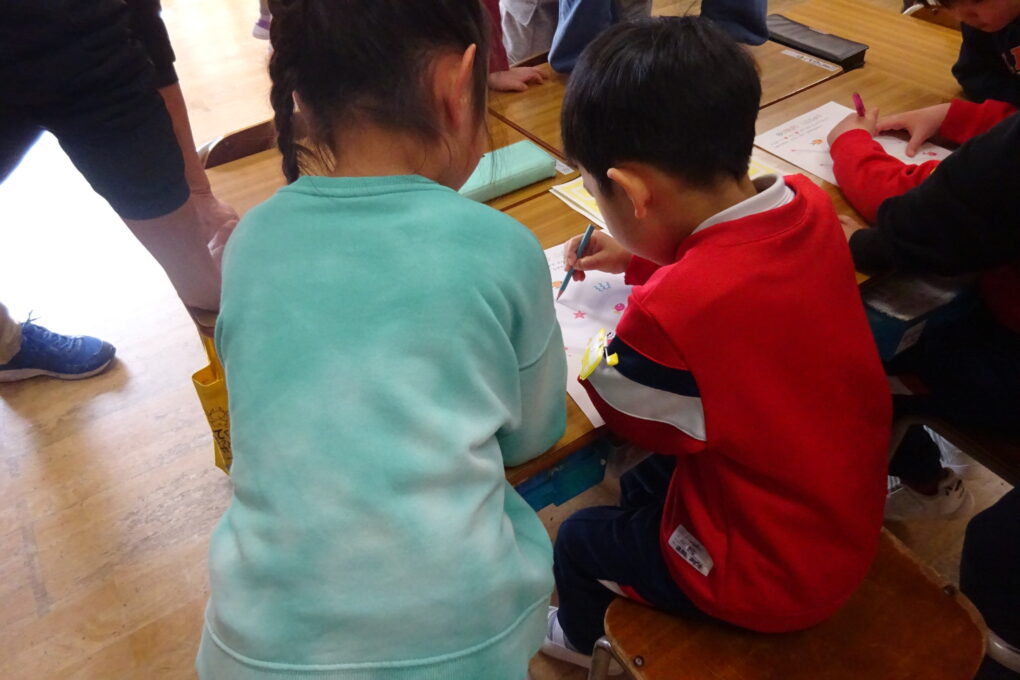 R7 長七小トピックス【2月24日・3月2日】あかね幼稚園と今里こども園の年長さんが、学校体験にやってきました。1年生は、教室で鉛筆を使って線をかく体験のお手伝いをしました。今日は優しいお兄さんお姉さんです。5年生は、体育館に移動して、一緒に体を動かして遊びました。こちらも、年長さんに合わせて姿勢を低くしたり、手を優しくつないだりと、来年度最高学年として活躍する姿が見えてきました。
