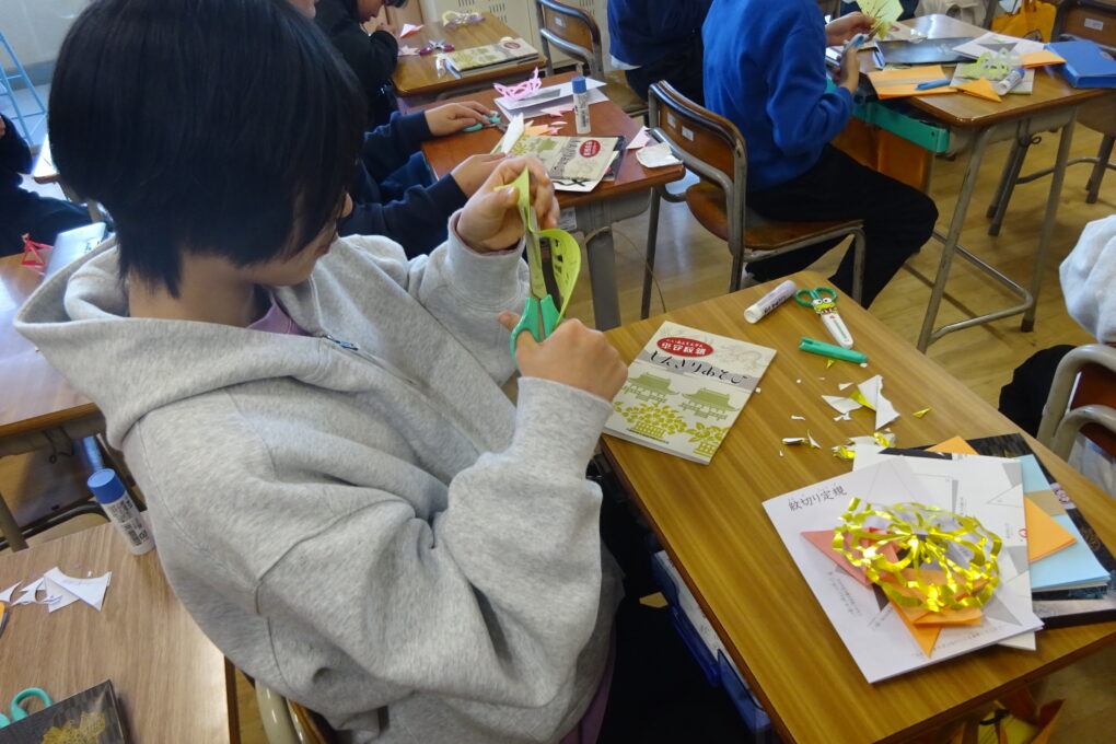 紋切り体験 5年生 R7 長七小トピックス Twitter Facebook はてブ Pocket LINE コピー 2026.03.15 【3月】紋工芸の方々にお越しいただき、紋切り遊びを体験させていただきました。一人ずつ色紙や型紙が入ったセットも用意してくださり、子どもたちは2時間どっぷりと集中していました。 Post Views: 7