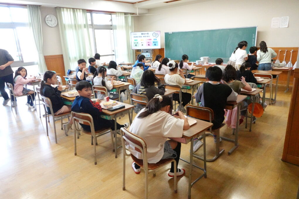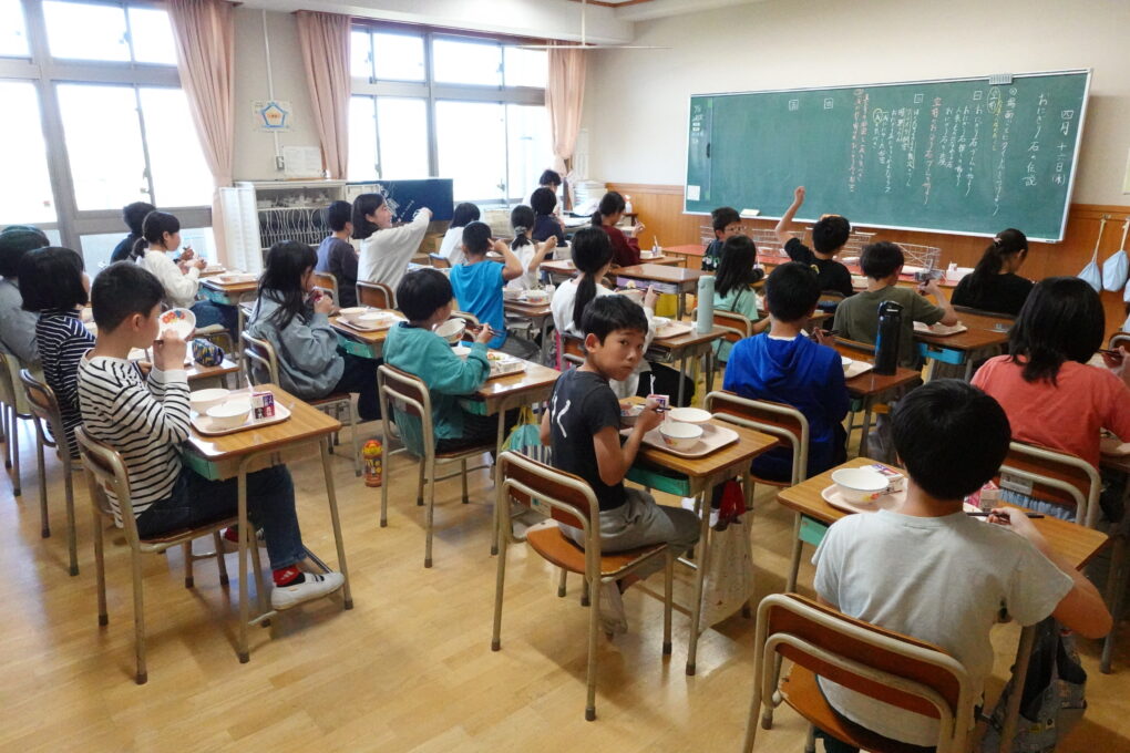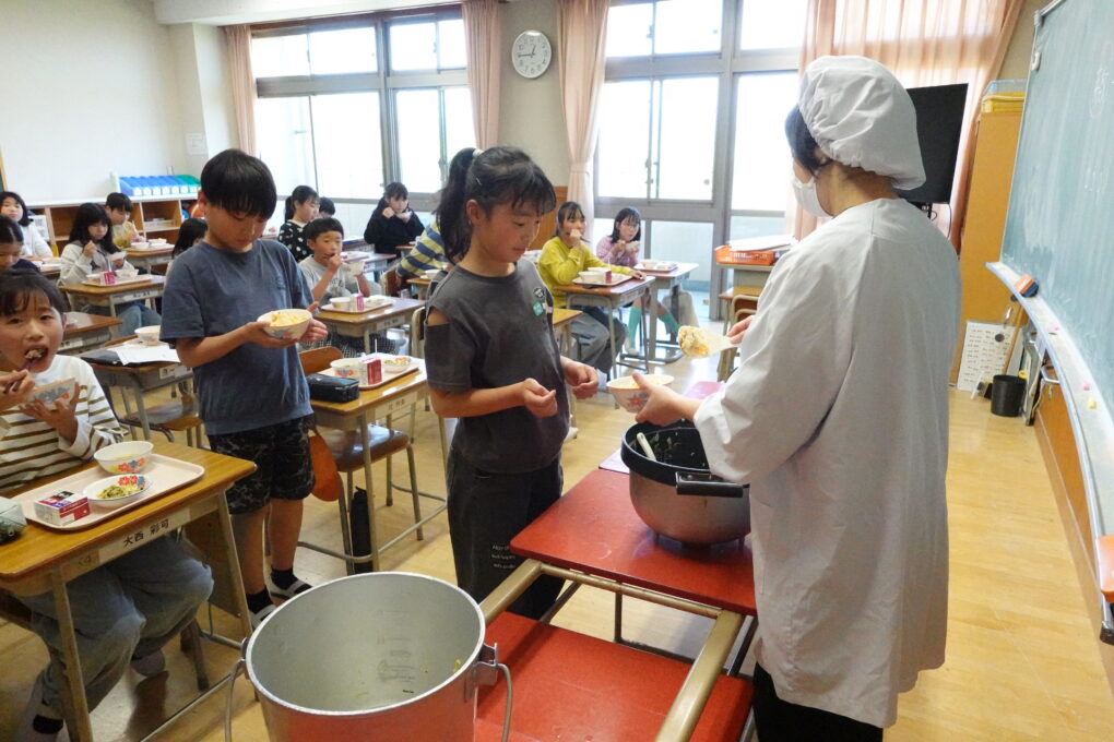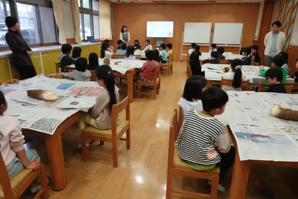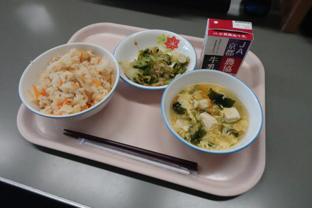 今日の給食は、みんなが大好きなたけのこごはん!…だったのですが、実は昨日3年生がたけのこの皮むきに挑戦をしていました。長岡京市の特産品としても有名なたけのこですが、まさに今がシーズンのど真ん中ということで、班ごとに分かれて大きなたけのこを観察し、さわってみたり、においをかいでみたり…そのあとみんなで協力をして皮をむきました。実際に今日の給食で出てきたたけのこごはんはとってもおいしく、どのクラスでもうれしそうに食べている姿が見られました。3年生ががんばって皮むきをしたたけのこもちゃんと入っていたようです♬3年生のみなさん、よくがんばりましたね。
