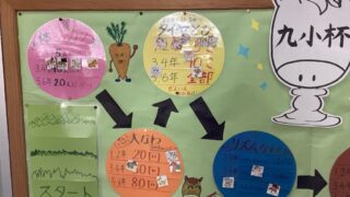本校では、全校で「体をつくって駆け抜けろ!九小杯」に取り組んでいます。寒い時期でも、こどもたちが楽しく体を動かし、運動に親しめるようにと行っている活動です。いくつかの“ミッション”に、どの学年も元気いっぱい挑戦しています。  リズ...