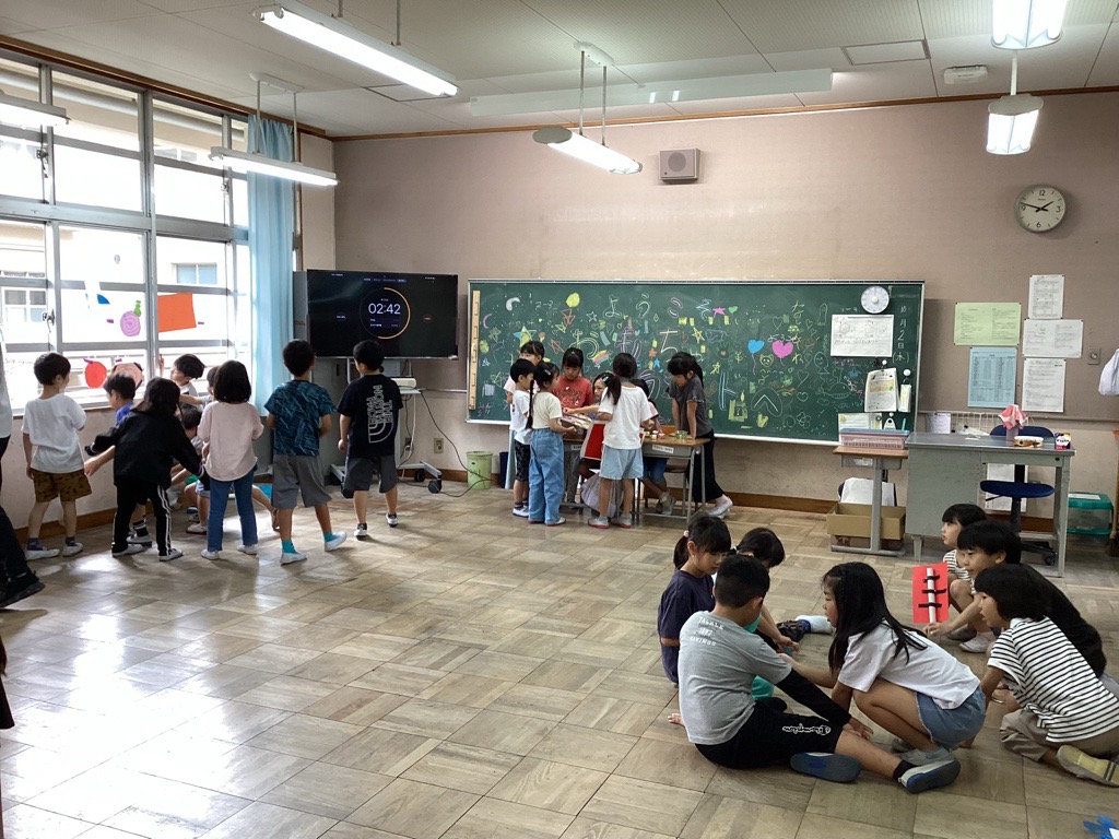 当日は、めいろやまとあてなど、子どもたちのアイデアが詰まったおもちゃが並び、1年生も2年生も笑顔いっぱいで楽しむ姿が見られました。2年生は、おもちゃの遊び方を丁寧に説明したり、優しく声をかけたりしながら、1年生をもてなしていました。