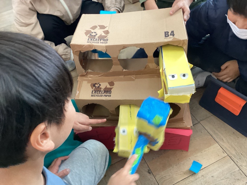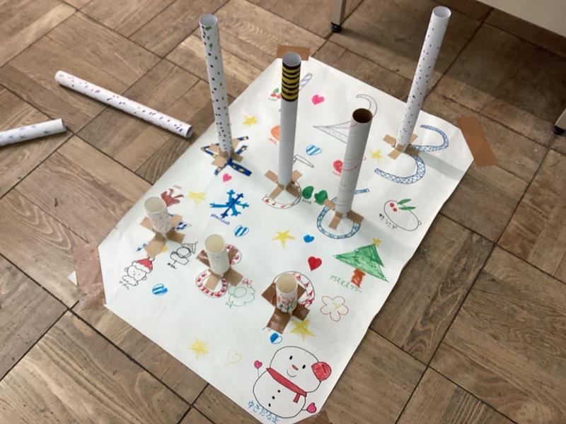 ペア学年で協力しながら、制作や遊びを通して楽しい時間を過ごしました。高学年は見通しをもって計画し、低学年が主体的に取り組めるように、わなげや謎解きゲームなど、低学年が喜ぶ工夫をこらした遊びを考えて準備しました。