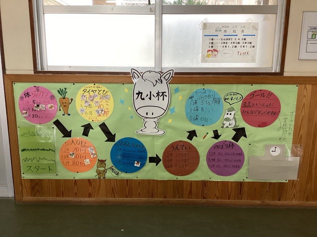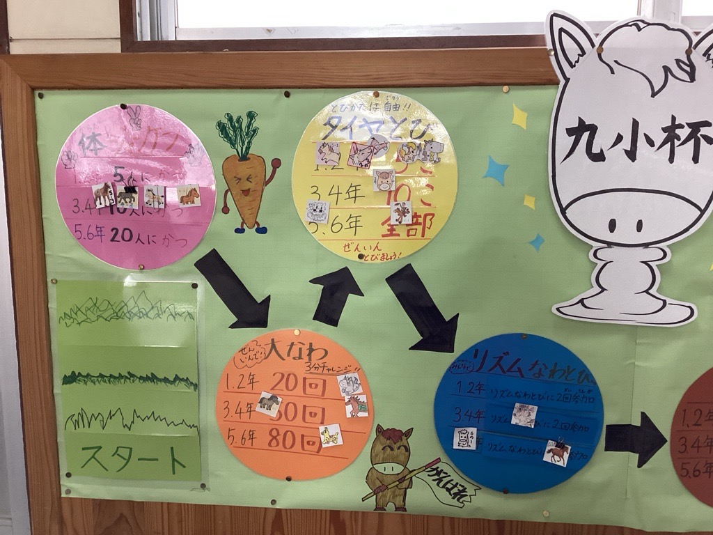 最近の投稿本校では、全校で「体をつくって駆け抜けろ!九小杯」に取り組んでいます。寒い時期でも、こどもたちが楽しく体を動かし、運動に親しめるようにと行っている活動です。いくつかの“ミッション”に、どの学年も元気いっぱい挑戦しています。
