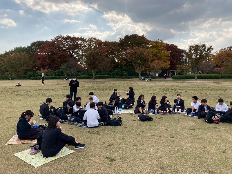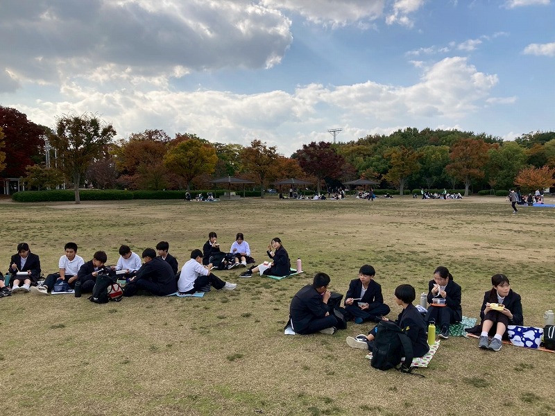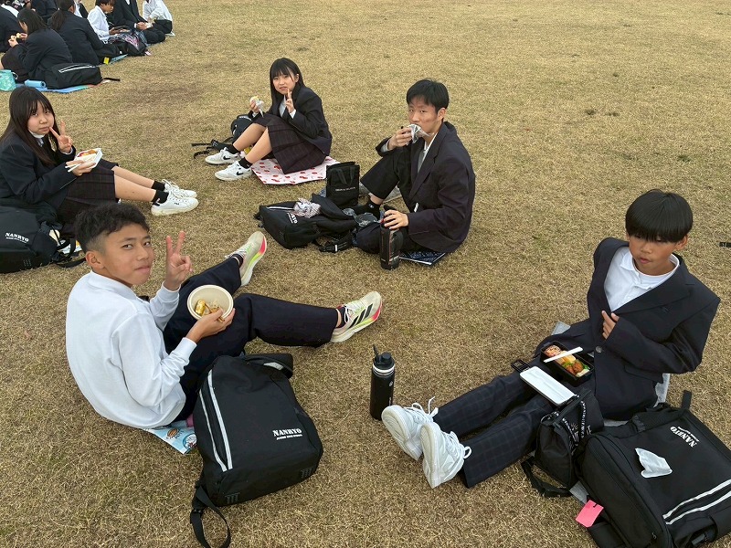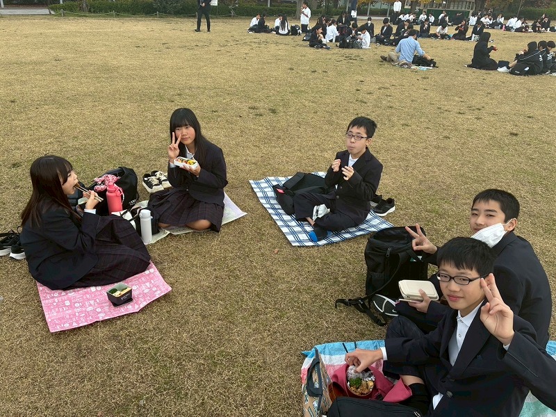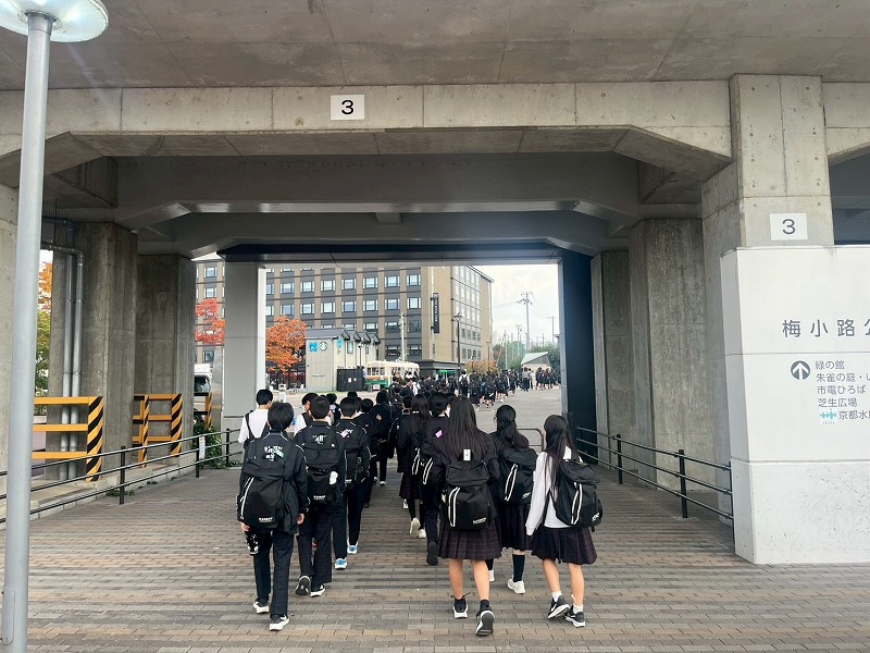 1年生 劇団四季の鑑賞① 学校生活の様子(日誌) 2025.11.14 本物の芸術や文化に触れる体験として、福知山市の「響プランF 心の充実事業」を活用し、本日、1年生が京都劇場に行って「赤毛のアン」を観劇をします。 前日に行った集団行動訓練の成果を発揮し、スムーズに移動や集合ができています。 梅小路公園芝生広場で昼食をとり、京都劇場へ移動します。