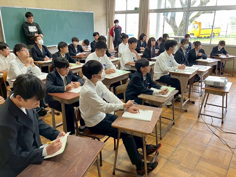 2年生総合学習フィールドワーク 学校生活の様子(日誌) 2025.11.14 2年生では、「ふるさとのよさを再発見する~未来へ語り継ぐまちのよさ~」というテーマで総合的な学習を進めています。本日は学びをさらに深めるべく、実際に利活用されている廃校施設へのフィールドワークを行いました。 どうすれば多くの人に施設を利用してもらえるか、日々試行錯誤されているお話を、生徒たちも真剣に聞き入っていました。 施設見学、お話を聞かせていただきました、610BASE様、S-LAB様ありがとうございました。