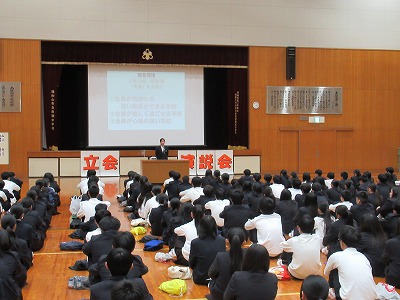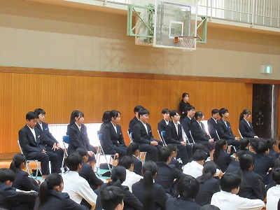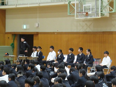 立会演説会・生徒会選挙 学校生活の様子(日誌) 2025.12.11 12月11日(木)の6時間目に、立会演説会を行いました。立候補者15名は、自分の思いや実現したいことを、堂々とした態度で語っていました。また、1・2年生も真剣に耳を傾けていました。演説会の後は、選挙管理委員会の運営のもと、各学級で厳正な生徒会選挙が行われました。