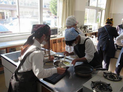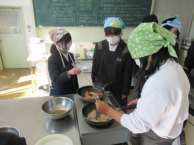 1年生・3年生 調理実習 学校生活の様子(日誌) 2025.12.17 今週、1年生と3年生は家庭科の授業で調理実習を行っています。1年生は「豚の生姜焼き」、3年生は「蒸しパン」に挑戦しました。班ごとに食材を切ったり、調味料を量ったりしながら、学級の仲間と協力して調理に取り組んでいます。