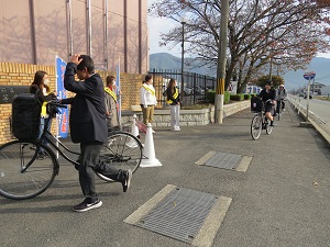 多くの保護者の方に御参加いただき、校門前で生徒一人ひとりにあいさつをしてくださっていました。生徒も元気よくあいさつを返していました。