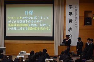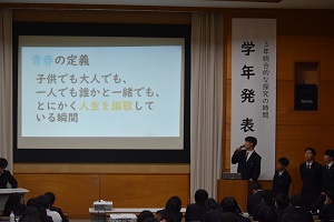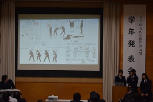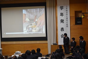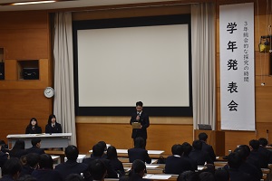 3年生の「総合的な探究の時間」では、1月22日(木)最後の授業で、学年発表会を実施しました。