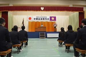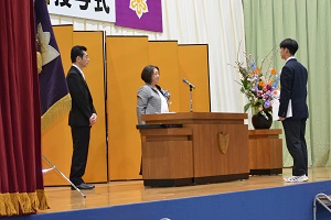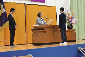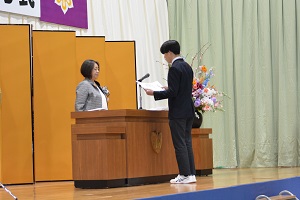 卒業生全員の呼名の後、代表生徒が登壇し卒業証書を受け取りました。