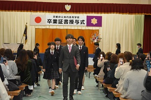 担任に先導されて卒業生が入場しました。