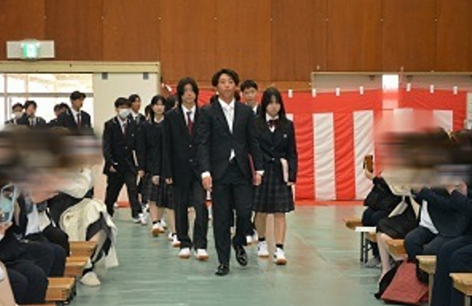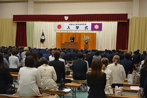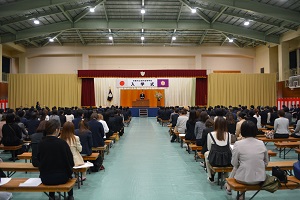 多くの保護者の皆様に御出席していただき、大きな拍手とともに新入生を会場に迎えました。