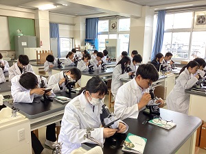 理数探究科 白衣配布、顕微鏡観察