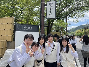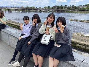 ■長時間、嵐山で楽しめるか不安でしたが意外と時間がすぐ過ぎてしまいました。 一度は行ってみたい場所だったのでこの機会に行けて嬉しかったです。2年になって出会った仲間とも楽しめて、研修旅行がもっと楽しみになりました。