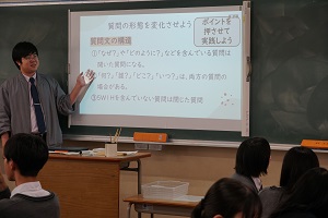 総合的な探究の時間「はばたき」(2年生)で、「閉じた問い&開いた問い」について学びました。前回の授業で行った「たくさんの問いを出そう」で作成した問いを、「はい/いいえ」で答えられる閉じた問い、説明が必要となる開いた問いに分類をしました。それぞれの問いが持つメリット・デメリットについても話し合いながら、理解を深めます。最後に質問文の構造について学んだうえで、問いの形態を変化させました。