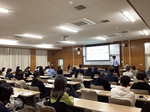 なお、分科会に先立ち全体会として、舞鶴市ふるさと応援課および産業活力課より舞鶴市の就職の状況についてお話いただきました。実際に舞鶴に移住された御担当者様から、UターンやIターン・移住者が増えている状況や、ご自身の体験から舞鶴には働く場所がたくさんあること、また非常に住みやすい街であることなどをお話いただきました。進学等で一旦地元を離れたとしても、卒業後の就職の選択肢のひとつとして御家庭でも話題にしていただければと思います。