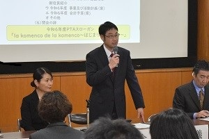 続く総会では昨年度の事業報告等の後、今年度の新本部役員様の紹介があり、そして事業計画や予算等が承認されました。朝の交通立ち番や学校祭協賛事業等、今後大変お世話になりますがよろしくお願いいたします。