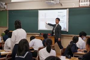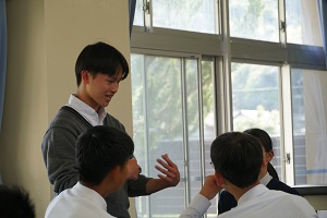 その後、高校生との交流会を実施し、高校生が中学生に対して高校生活について話をしたり、受験勉強についてのアドバイスをしたりすることで交流を行いました。中学生からも積極的な質問があり、高校生も自身のことを振り返りながら将来への展望などを考えるきっかけとなりました。