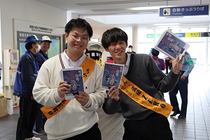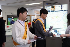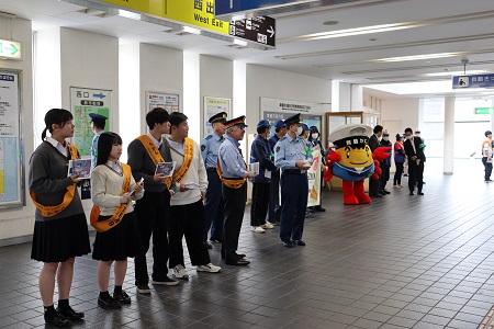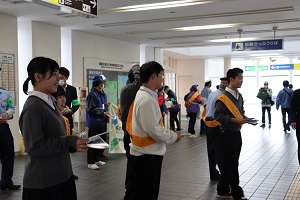 電車を利用する人たちに呼びかけます