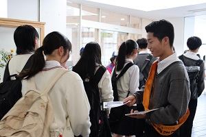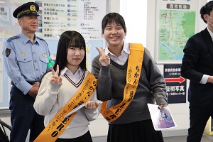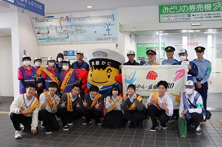 舞鶴警察署と合同の、「痴漢防止啓発キャンペーン」に参加しました。生徒会本部役員7名が朝の登校時に合わせて、西舞鶴駅で痴漢犯罪防止を呼びかけました。