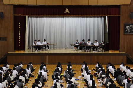 校長先生からは「選手の皆さんは、日々、熱心に練習した成果を携え、勝負のために明日の試合に臨みます。勝負事はなかなか思い通りにならないこともあるかと思いますが、頑張ればなんとかなるではなく、全力を出し切るようにしてください。そして、結果にしっかり向き合ってください。明日の総体は、出番のない人、写真部、放送部など多くの西高の生徒が関わります。他校生との交流も含め、有意義な一日になるようにがんばってきてください。」と激励の言葉がありました。