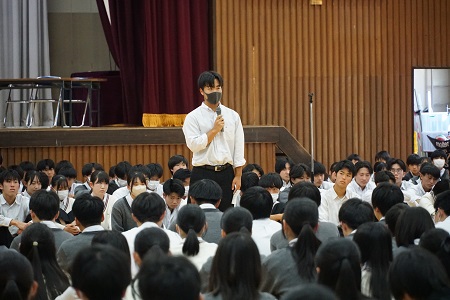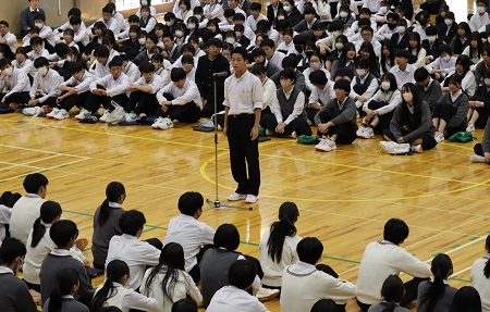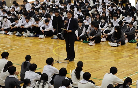 生徒会長は「選手の皆さんは、日々、仲間とともに練習に励み、共通の目標を持ってがんばってこられました。これまで培ってきた力を信じ、全力で戦ってきてください。」と選手のみんなにエールを送りました。
