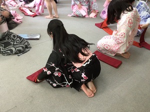 ひとりひとりに浴衣セットが配られ、お稽古が始まります