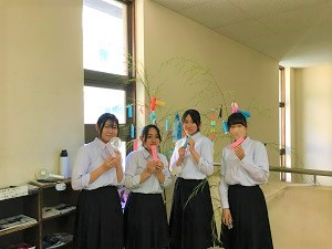 短冊に願いごとを書いて掛けている生徒たちもいます。