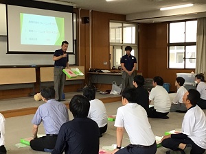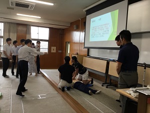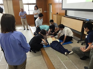 舞鶴西消防署より2名の消防職員様にお越しいただき、全教職員を対象に救急救命講習を実施しました。