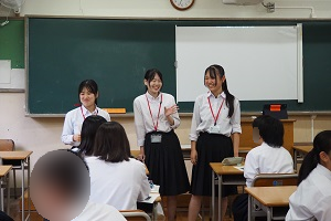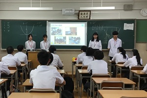 体験セミナーでは、進路状況や入試制度、理数探究科についての説明の後、中学生の皆様には体験授業を通して、ほんの少しの時間でしたが、「高校生」を体験していただきました。
