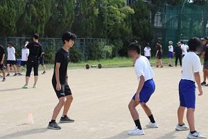 大会を目前に控えた舞鶴支援学校中等部・高等部の生徒13名と本校の陸上部16名が合同練習を行いました。最初はお互いに緊張している様子が見られましたが、足でじゃんけんなどの活動を通じて徐々に打ち解けていきました。全員でアップを行った後、各種目に分かれて練習に励みました。お互いにとって良い刺激が得られる貴重な機会となりました。