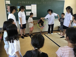 2年生2名、1年生2名が中筋地域児童クラブへボランティアに行きました。事前に自分たちで新聞、フラフープ、折り紙を使った遊びを考え、15名の子ども達と楽しく遊びました。どの遊びも子ども達に人気で、あっという間の90分間でした。次は冬休みに行く予定です。