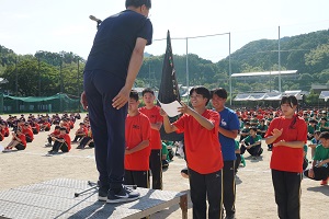 西舞鶴高校では5団に分かれて競い、総合優勝を目指します。当日は快晴で、メラメラとグラウンドを照らす太陽はまるで生徒達の心を表しているようでした。