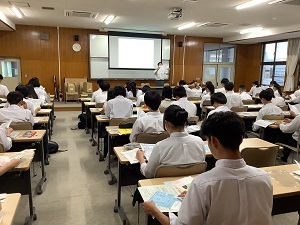 大学入学共通テストの出願に係るガイダンスを2会場にて実施しました。生徒たちは緊張した面持ちでしっかりと説明を聞き、出願書類に目を通していました。不備がないようにしっかりと準備してください。9月末からいよいよ出願となります。