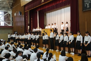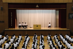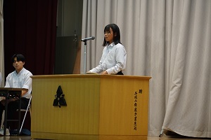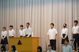 最後に、令和5年度後期から令和6年度前期生徒会が登壇し、代表で生徒会長が退任の挨拶を述べました。