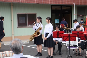 フェスでは、「銀河鉄道999」「Happiness」「Y.M.C.A」「明日はきっといい日になる」の4曲を演奏しました。秋の涼しい風が吹くとても良い気候の中で、施設のスタッフや利用者の方々、地域の方々に手拍子もしていただきながら、楽しく演奏することができました。退場する際には、「ありがとう」「よかったよ」とたくさんの方に声を掛けていただきました。