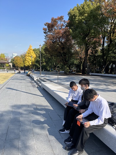 環境省で行われた発表会では、専門家の方々からのアドバイスや他の受賞者の皆さんとの交流の時間が設けられ、沢山の学びや気づき、発見が生まれました。他の学校の取組はとてもレベルの高いものでしたが、そういった場で発表・交流することで参加した生徒たちも自分たちの取組の特色や、伝える際の留意点を確認することができました。