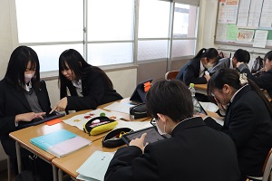 2時間目は、持ち帰った植物の同定です。その植物の特徴をよく読み取って、Webサイトにある検索システムを使って調べていきます。これが、なかなか難しい。特徴から絞り込んでも、「該当なし」と出たり、逆に、候補が多すぎて決め手に欠けたりと。でも、班のみんなで相談したり、意見を出しあうことで、なんとか採集した標本の同定にこぎつけました。それが、正しいかどうかは、ご愛敬ということで。ただ、こうした地道な生物種の同定調査を経験し、「理科」という分野に少しでも興味が膨らめばいいなと願っています。
