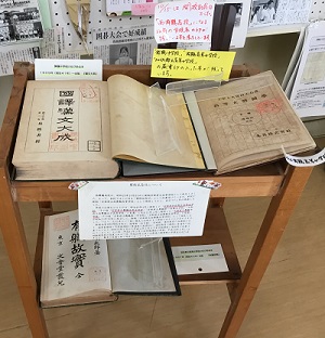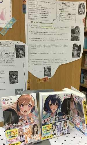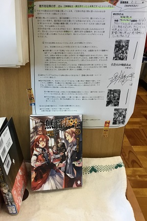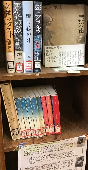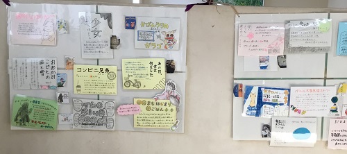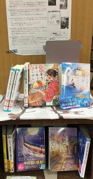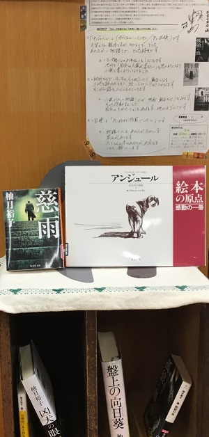 ①前期図書委員が夏に送った「好きな作家さんへのアンケート手紙」にお返事をくださった作家の方々10名の著作等を展示しています。