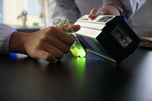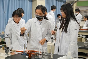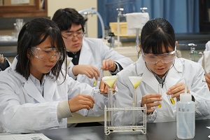 紫外線を当てると蛍光を出す分子を合成して、その性質を学習しました。また、身近に利用されている蛍光物質の働きを考えました。