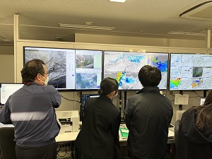 また、実際に気象予報を行っている現場も見学させていただきました。ここでは、気象データの分析方法や予報作成のプロセスについて、職員の方が丁寧に解説してくださいました。テレビやインターネットで目にする天気予報の背後には、膨大なデータと高度な技術が関わっていることを知り、生徒たちは大きな感動を覚えた様子でした。