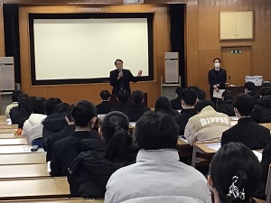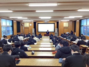 1月18日(土)19日(日)に大学入学共通テストを受ける生徒へ向けて、「最終ガイダンス」兼「激励会」を行いました。校長先生や3学年部長から激励の言葉をいただき、進路指導部長からはテスト当日の注意点や受験後の活動について説明を受けました。多くの生徒が緊張した様子で会場へ集まりましたが、終了後には「頑張ろう」と互いに励まし合いながら帰路につく姿が印象的でした。当日は生徒たちが元気に受験会場へ行き、全力を出してこられるよう、教職員全員が応援しています。