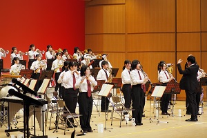 舞鶴市内中学校吹奏楽部との合同ステージや書道部との合同パフォーマンスもあります。