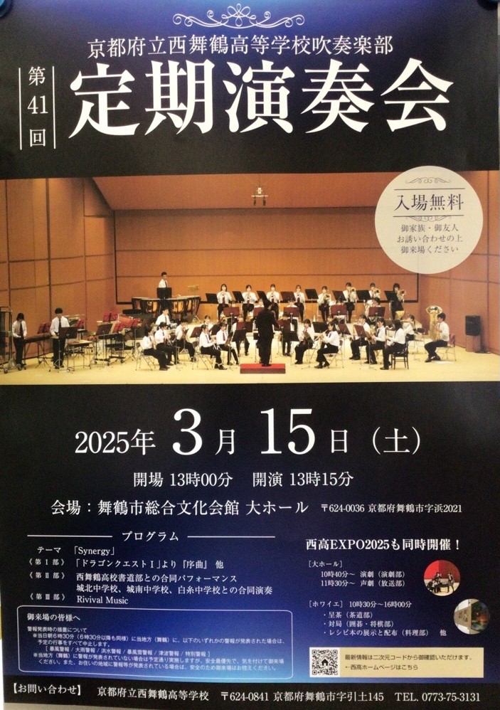 *同時に吹奏楽部による「第41回定期演奏会」も開催します。(詳細はこちら)