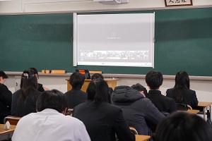 4限に、2年生対象主権者教育を実施しました。前日までに投票を終えた生徒たちは、京都府立大学から窪田先生と4回生の大西様、舞鶴市選挙管理委員会から本井様、安達様をお迎えし、Zoomを通じて講義を受けました。当日の講義の中では、実際に起きた出来事やどのような観点をもち各自が投票に行くのかなど、具体的に分かりやすく解説していただきました。