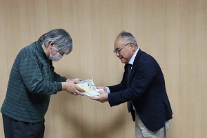 卒業生が不要となった上靴・体育館シューズを生徒会が呼びかけ、卒業式に回収をしました。今年度は、上靴が126足、体育館シューズが82足集まりました。3月24日(月)にNPO法人 ぎふ・コートジボアール様にご来校いただき、靴をお渡ししました。